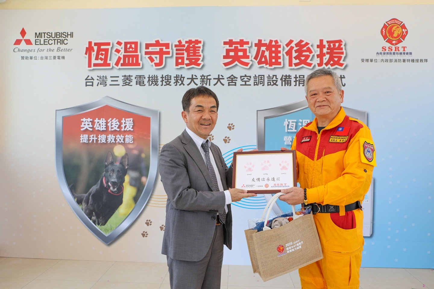 台灣位於環太平洋地震帶,是全球地震災害高風險地區之一。2024年花蓮大地震喚起全台對防災的高度重視,也讓社會更關注搜救犬與特搜隊在救援行動中的關鍵角色。台灣三菱電機深耕在地逾七十年,持續以技術創新與優質服務推動社會永續,並積極推動人寵共好的健康生活。為支持內政部消防署訓練中心2025年全新落成的消防署特種搜救隊搜救犬訓練中心,台灣三菱電機捐贈市值約新台幣一百七十萬元的空調及換氣系列產品,包括家用與商用空調、全熱交換器與空清循環扇,期盼提供更穩定舒適的室內空氣環境,提升搜救隊員與搜救犬的住訓品質,也藉此凝聚社會對搜救犬隊發展的支持、推廣防災意識,為台灣防災與救援體系貢獻心力。